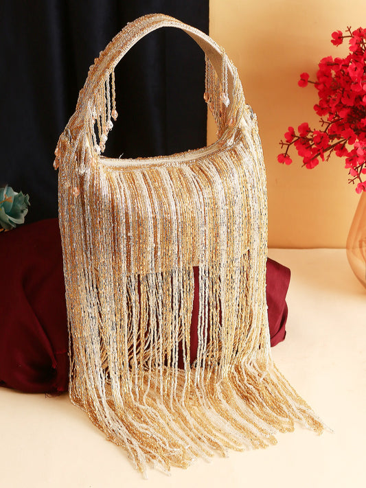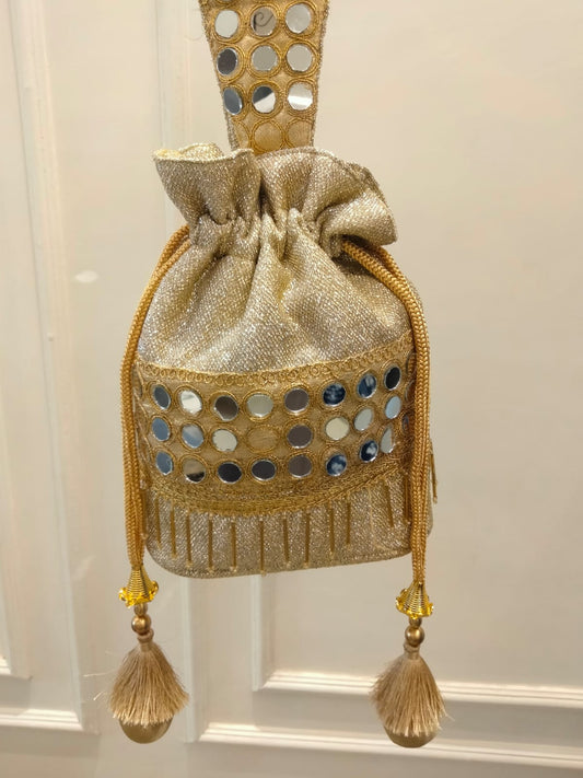 Golden Mirror work Potli with mirror work handle and classy latkans