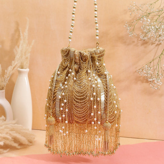 Vibrant Intricate Pearl Potlis – Elegance in Every Stitch!
