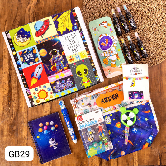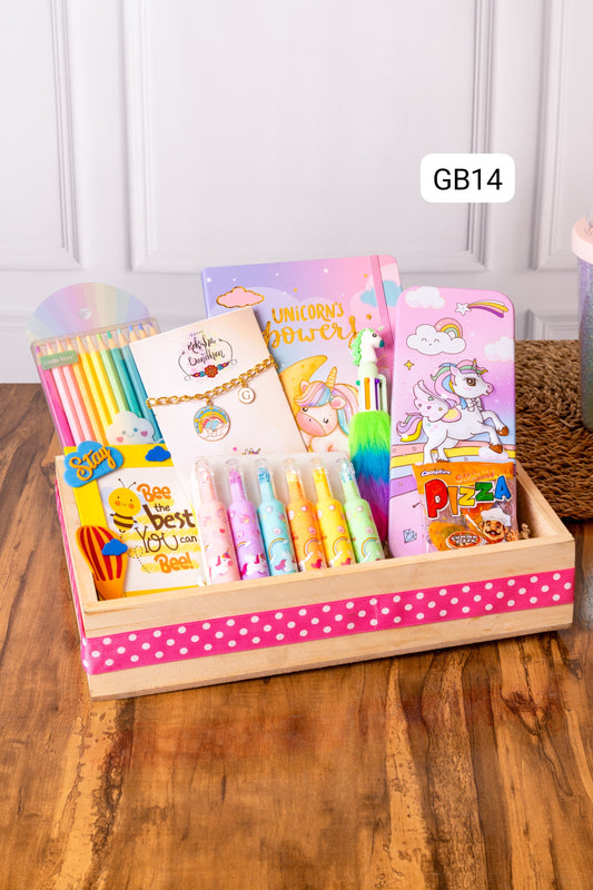 GB 13-16 Personalised Kids Theme Hampers with Diary, Stationery & Rakhi – Unicorn, Superhero, Mermaid, Space