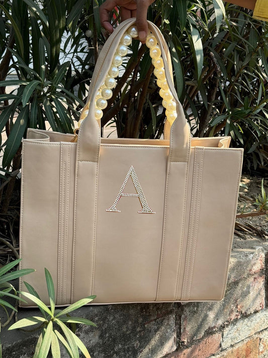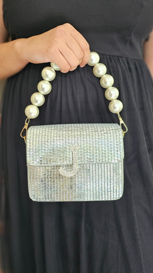 Elegant Initial Customized Clutch Bag with Pearl Handle