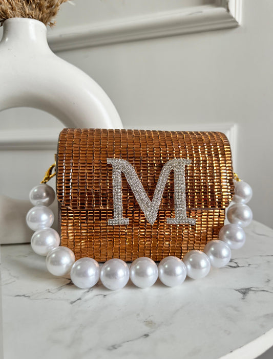 Trending Initial Customized Metallic Flap Bag with Pearl Handle (Mini)