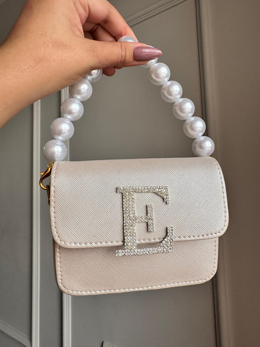 Elegant Initial Customized Clutch Bag with Pearl Handle (Mini)