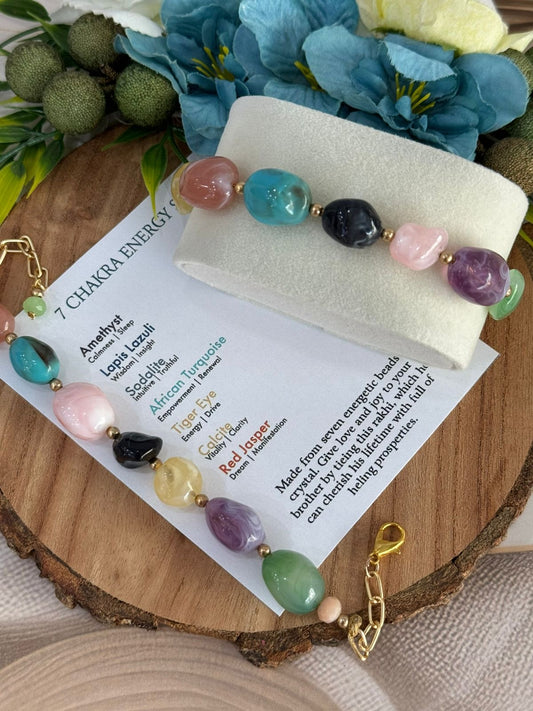 L-01 ✨ Premium 7 Chakras Stone Rakhi Bracelet for Brother – Reusable Spiritual Rakhi for Raksha Bandhan 2025