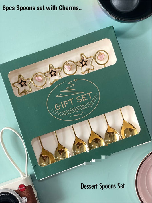 Christmas Special Stainless Steel Charms Spoon Set in Elegant Gift Box (Set of 6)