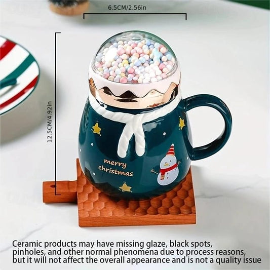 Christmas Ceramic Mugs with Steel Spoon & Magnetic Silicon Charms