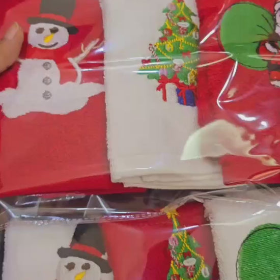 - 3 Face Towels: A mix of red and white with embroidered patches. Made from 100% cotton for a soft and absorbent feel.
